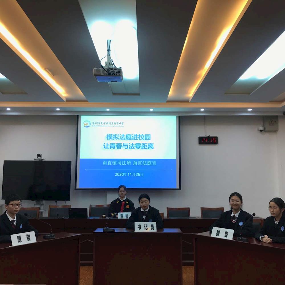 《民法典》讲座后,甪直甫里中学初一学生开展了模拟法庭的活动。此次模拟法庭主要以未成年人打篮球受伤案件为剧本,由甫里中学学生扮演审判长、书记员、原告、被告、旁听等相关角色。