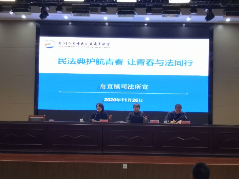 为进一步加强对青少年的法制宣传教育,提高青少年法律意识、增强法制观念,2020年11月26日下午,甪直甫里中学特邀甪直镇司法所、甪直法庭和甪直镇集成指挥中心综治科联合举办了“民法典护航青春,让青春与法同行”活动。