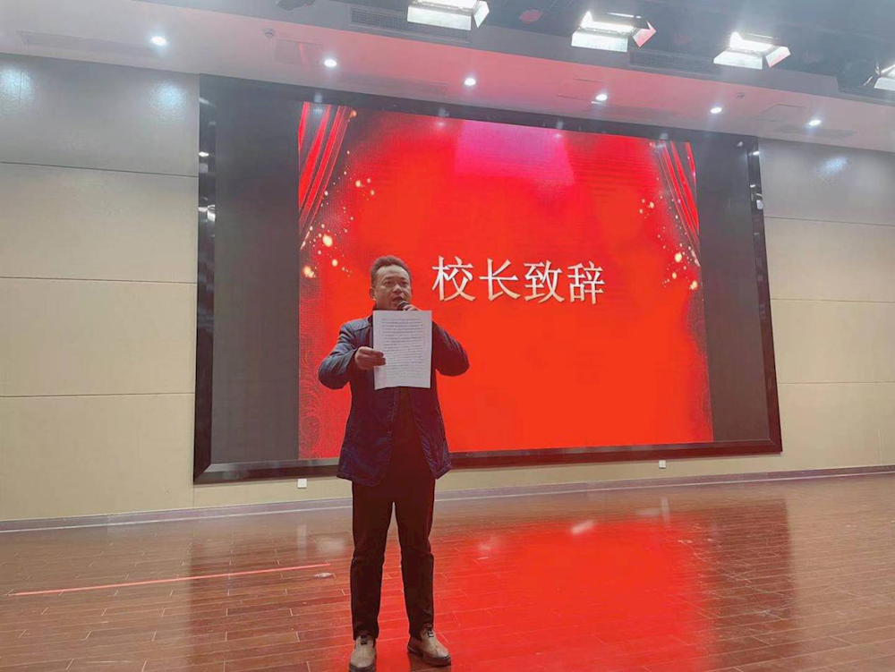 首先是许良副校长表达了对全体教师和学生们的热烈欢迎,并致元旦贺词。许校长带领大家一同回顾了2020这一年甫中取得的无数喜人成就,就如同向我们展示一面琳琅满目的奖杯墙。他代表学校祝愿甫中师生们明年步步高升,再攀高峰!