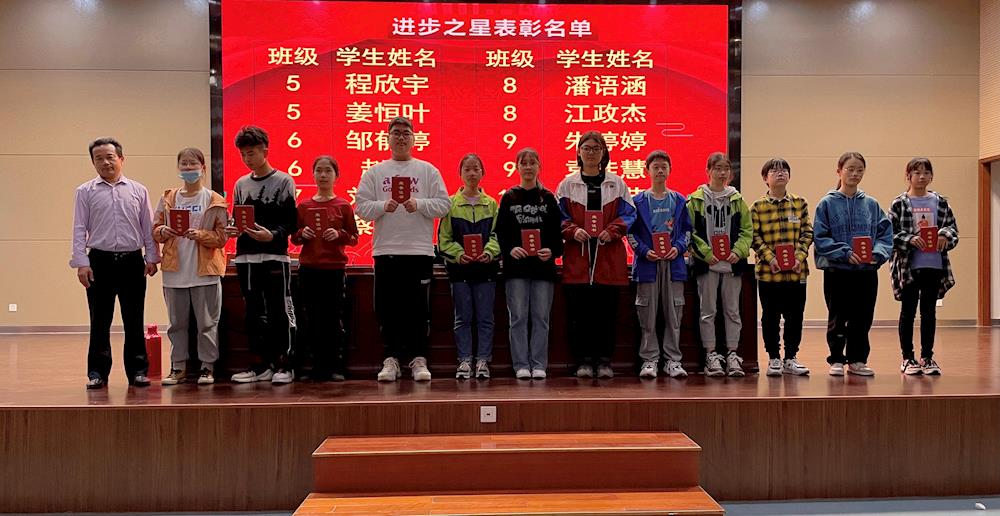 会上,初二年级组长史芳芳老师宣读了获得 “甫里之星”“进步之星”光荣称号的学生名单。校长助理惠芬老师为受表彰学生颁奖。
