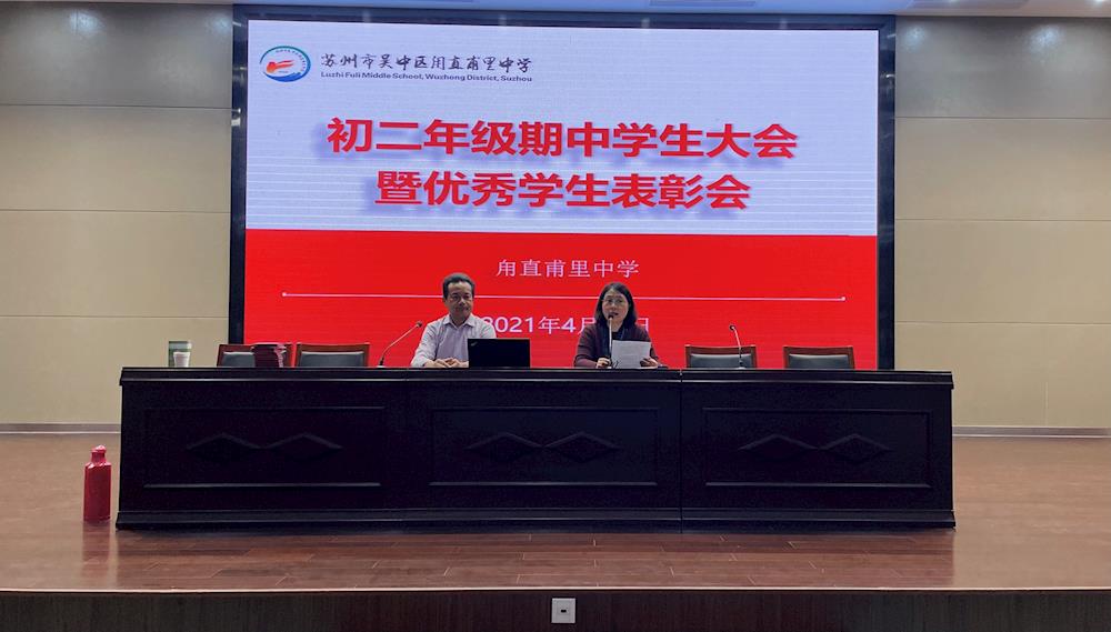 4月28日,甫里中学初二年级期中学生大会暨优秀学生表彰会隆重举行。
