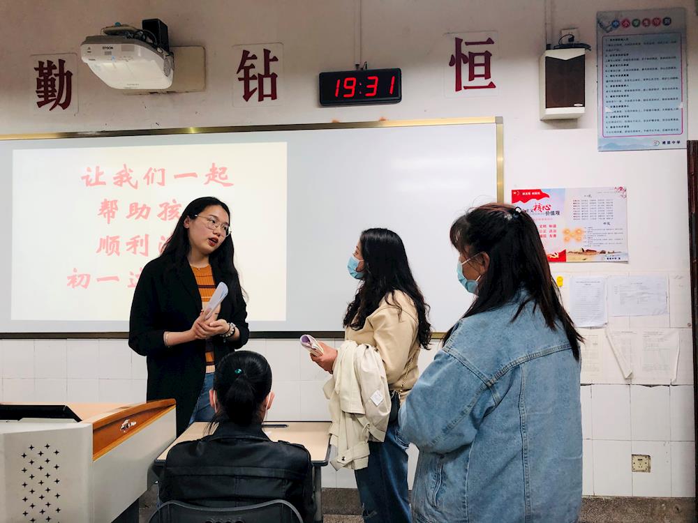 除此之外,各班班主任们从近期学生学习状态、存在的问题等方面作出了分析和小结。他们号召在座家长,一定要关注青春期孩子的各种变化,及时调整教育策略——陪伴、目标、交流、疏导、照顾相互结合。另外,家长也要重视家校沟通的重要性。在家长会的结尾,部分家长找到任课老师单独交流,共同探讨解决问题的方法。