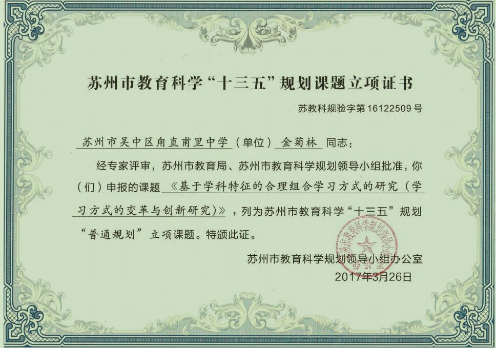 2014年,甫里中学从甪直中学分开独立,教育科研从零起步。“十三五”期间,在学校领导的指导与支持下,聚焦学科特色,探究学法,整合资源,落地生根,发挥课题研究的引领和支持作用,beat365中国唯一官网取得了可圈可点的成果。