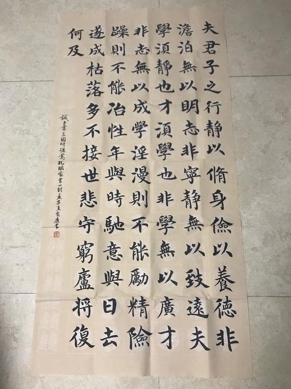 肖康自述:我于10岁开始书法学习,至今约有4年久之久。起初学习曹全碑,后学习颜真卿的楷书和赵孟頫的行书,在开始的那段时间一直以为努力练习才是成学之道。后来年级稍长才知道“听”有时比“练”更为重要。书法也不仅指的是字写得好,也是一个人心境涵养的象征。当我真正沉浸在书法中时,或许我一周中最放松的时刻。这也是我由衷喜爱书法的原因之一。