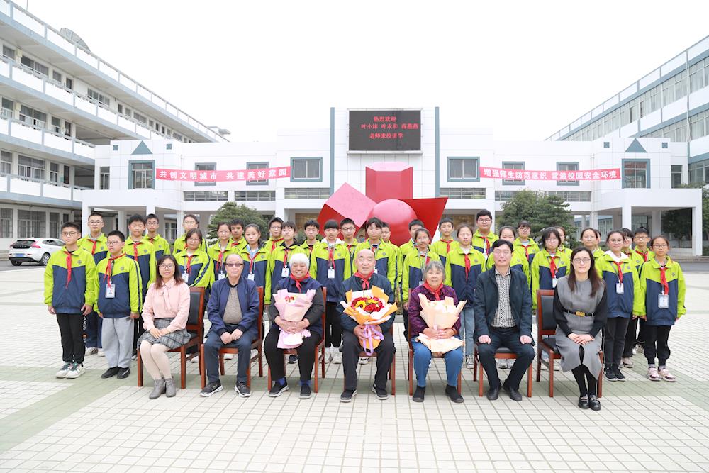 11月2日,甫里中学邀请到了来甪直寻根访祖的叶圣陶家人,他们是叶永和老师,叶小沫老师和蒋燕燕老师。刚一下车,热情的同学献上鲜花,为他们带上红领巾,鹤发童颜的老者,生机勃勃的少年,同框留下美好瞬间。