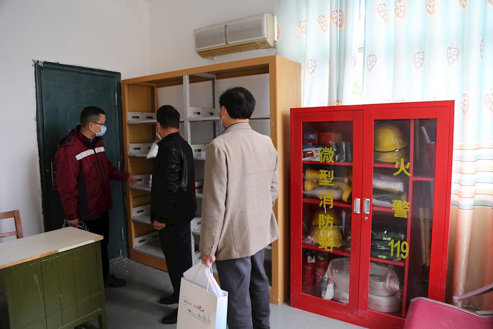 吴中区政府教育督导室副主任孟晓庆等一行首先了解了学校晨午检、防疫应急处置预案、通风消毒等各项防控措施的操作流程,随后验收组分组实地查看了临时隔离室、医务室、物资储备室、食堂、消控室等重点区域,详细询问了学校防护人员配备、防护物资储备、分批错时用餐等情况