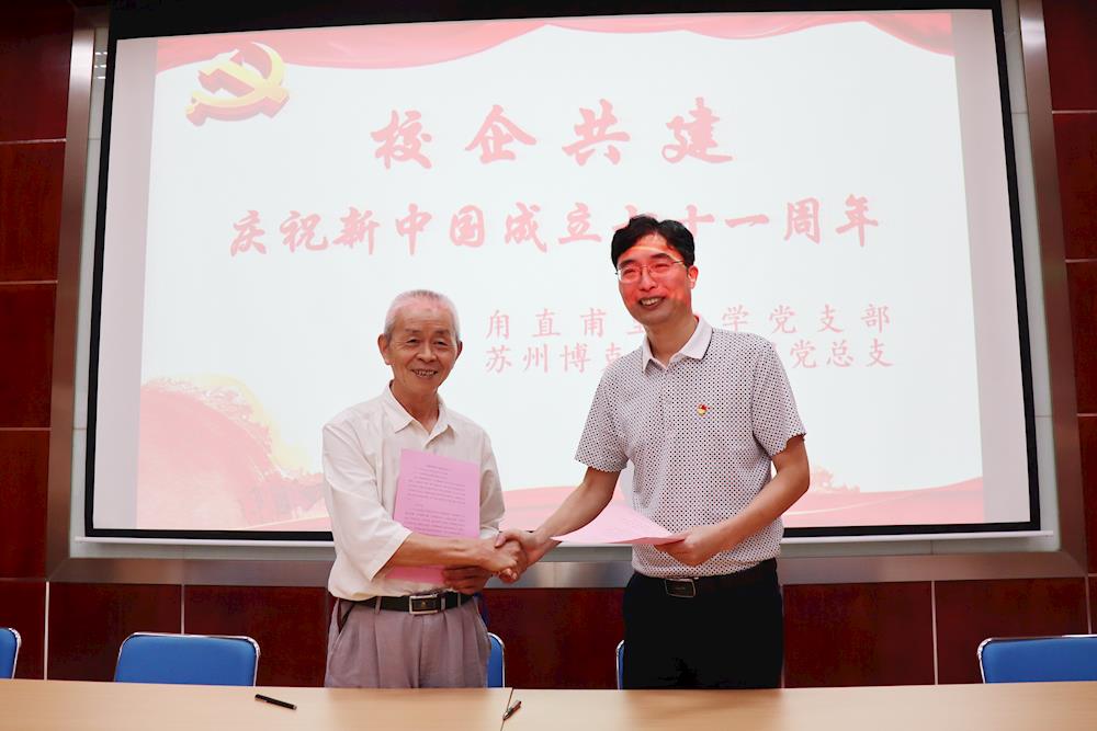 为深入贯彻落实习近平新时代中国特色社会主义思想及十九大精神,切实加强基层党组织建设,实现党组织优势互补,进一步增强党组织的创造力、凝聚力和战斗力,努力构建“资源共享、优势互补、互融互通、共同提高”的党建工作新格局,经过细致筹划、精心组织,9月18日,甫里中学党支部与博克企业集团党总支在博克企业集团联合开展主题为“校企共建 庆祝新中国成立71周年”的结对共建签约仪式活动。甫里中学党支部书记陈龙生、博克企业集团党总支书记沈培生等党员代表出席了共建仪式。