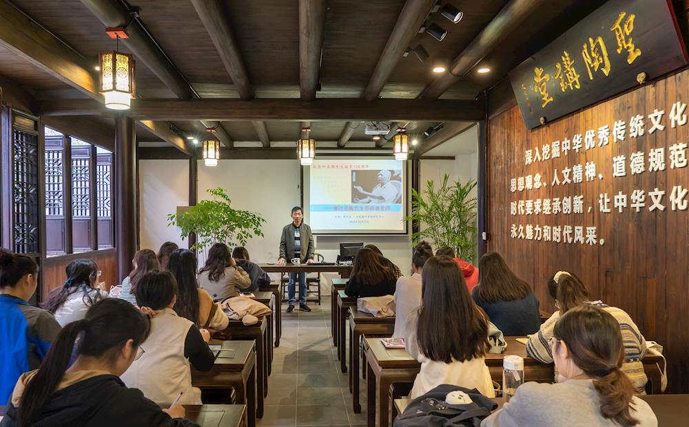 讲座结束后,周老师带领大家走进叶圣陶纪念馆,追寻叶圣陶先生在甪直的教改足迹。勉励大家要像叶圣陶先生那样,做新时代基础教育的耕耘者。